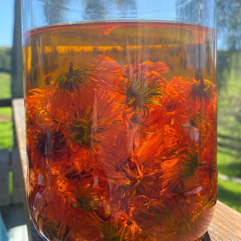 Helianthus Annuus (Sunflower) Seed Oil - A stable, antioxidant-rich oil with a naturally high content of oleic acid and vitamin E. Unlike standard sunflower oil, its oleic-rich profile gives it a longer shelf life and a more protective, emollient character while still being gentle and well-tolerated. Traditionally valued for supporting barrier repair, reducing dryness, and calming sensitive skin, it provides an ideal base for herbal infusions used on delicate skin.